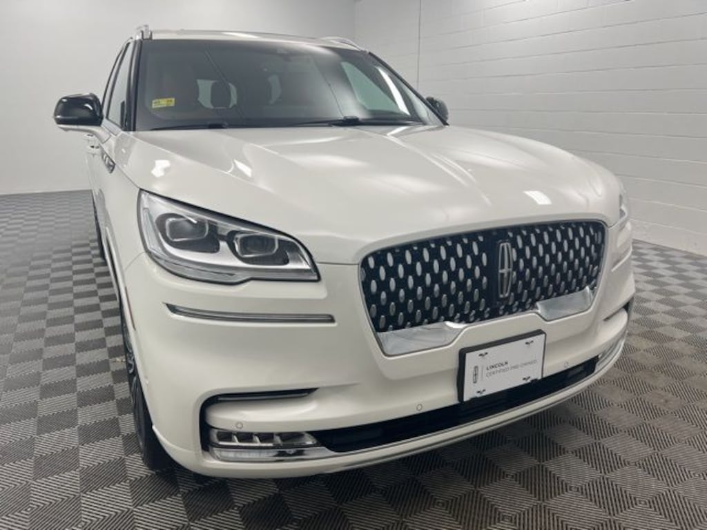 Certified. 2023 Lincoln Aviator Black Label Pristine White Metallic Tri-Coat 3.0L V6 10-Speed Automatic AWD CARFAX One-Owner.